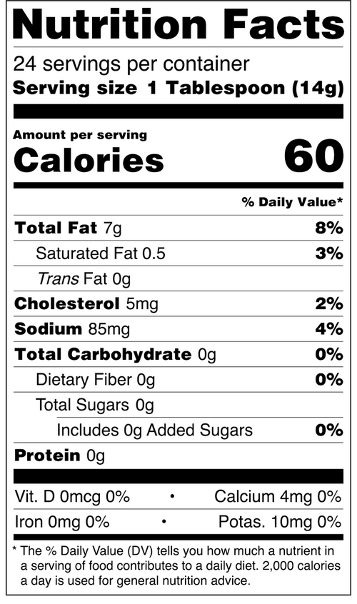 INGREDIENTS: HIGH OLEIC SUNFLOWER OIL, DILL PICKLE RELISH (CUCUMBER, VINEGAR, WATER, SALT, CALCIUM CHLORIDE), CAGE-FREE EGG YOLKS, WHOLE GRAIN DIJON MUSTARD (WATER, MUSTARD SEED, DISTILLED VINEGAR, SALT, WHITE WINE, CITRIC ACID, TARTARIC ACID, SPICES), WATER, DILL PICKLE SEASONING (MALTODEXTRIN, SALT, GARLIC POWDER, VINEGAR, SUGAR, ONION POWDER, YEAST EXTRACT, SPICES, CITRIC ACID, NATURAL FLAVORS, PARSLEY, TARTARIC ACID), DISTILLED VINEGAR, SUGAR, SALT, GARLIC POWDER, DILL, APPLE CIDER VINEGAR, XANTHAN GUM, MUSTARD FLOUR, BLACK PEPPER EXTRACT.CONTAINS: EGG